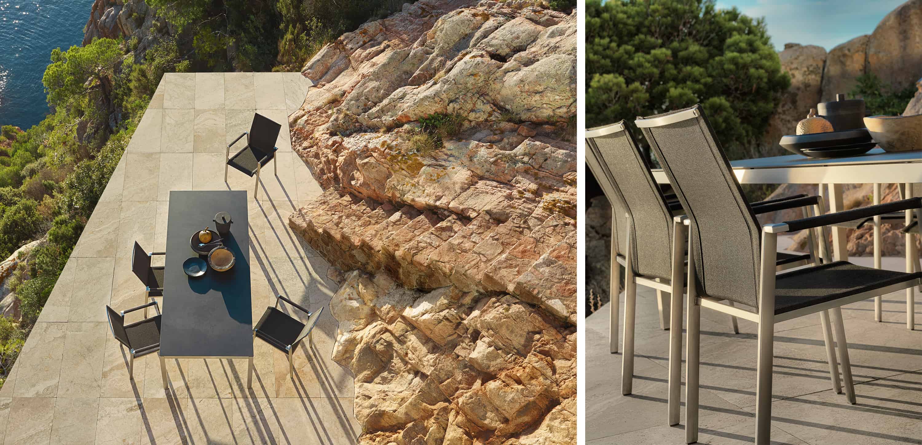 The slim and minimalist design of the DANCE stacking chair consists of a linear frame made of brushed stainless steel and a filigree seat shell. The seat with an ergonomically shaped backrest offers maximum seating comfort thanks to its swinging back. The seat shell itself is made of softex, a fabric developed exclusively by solpuri with a fabric-like feel. It is weather and UV resistant, breathable, quick-drying and environmentally friendly.