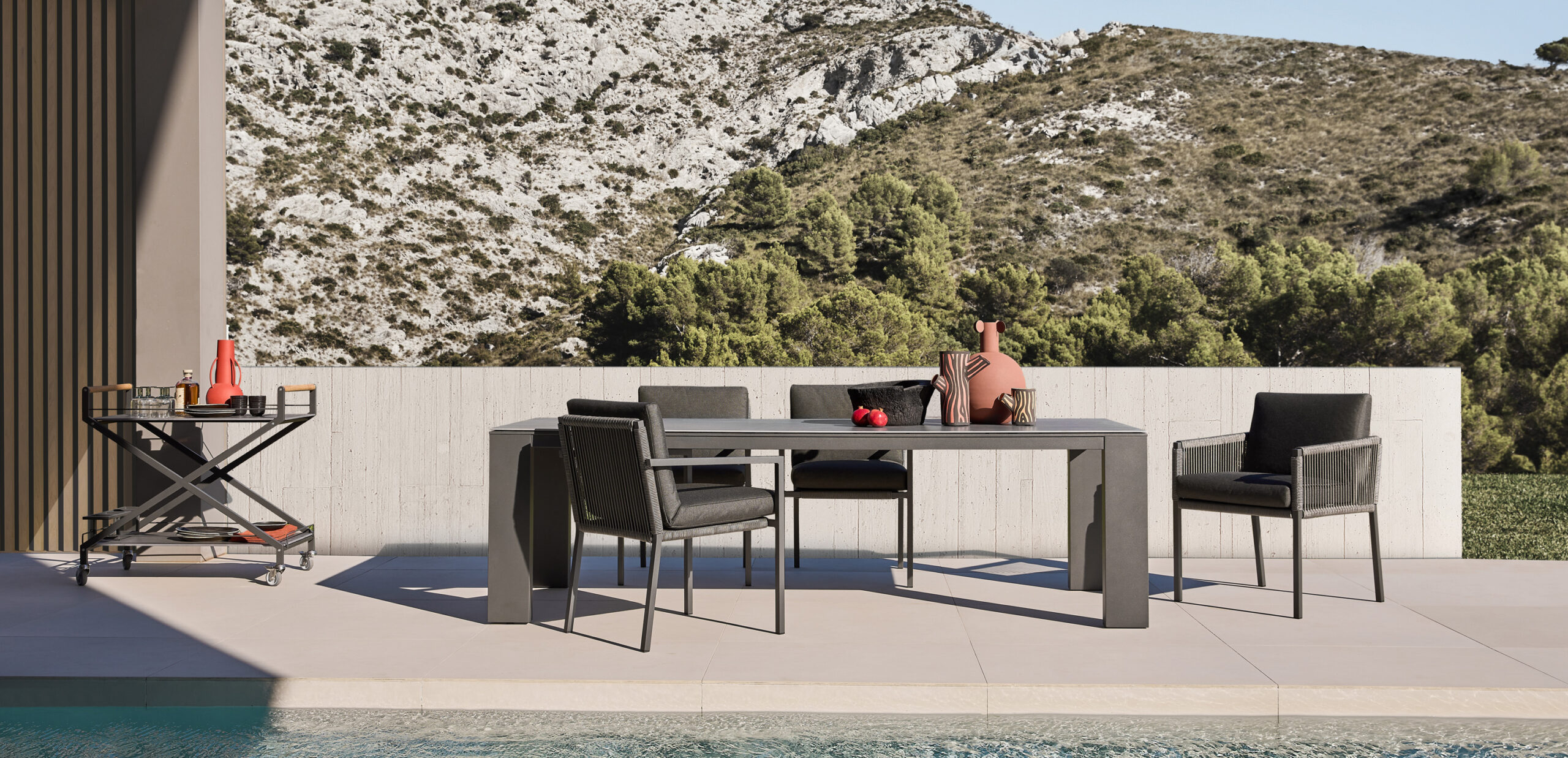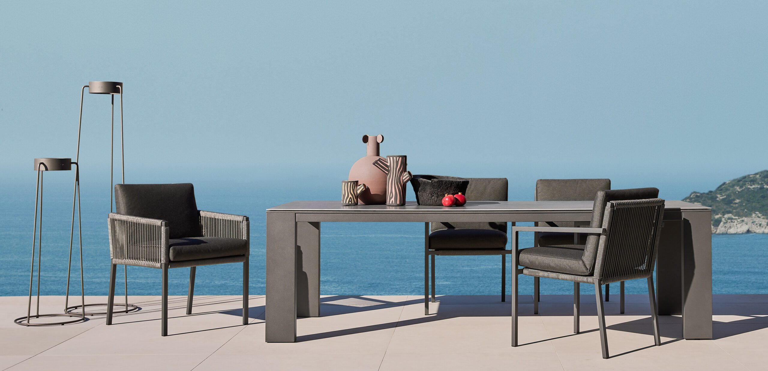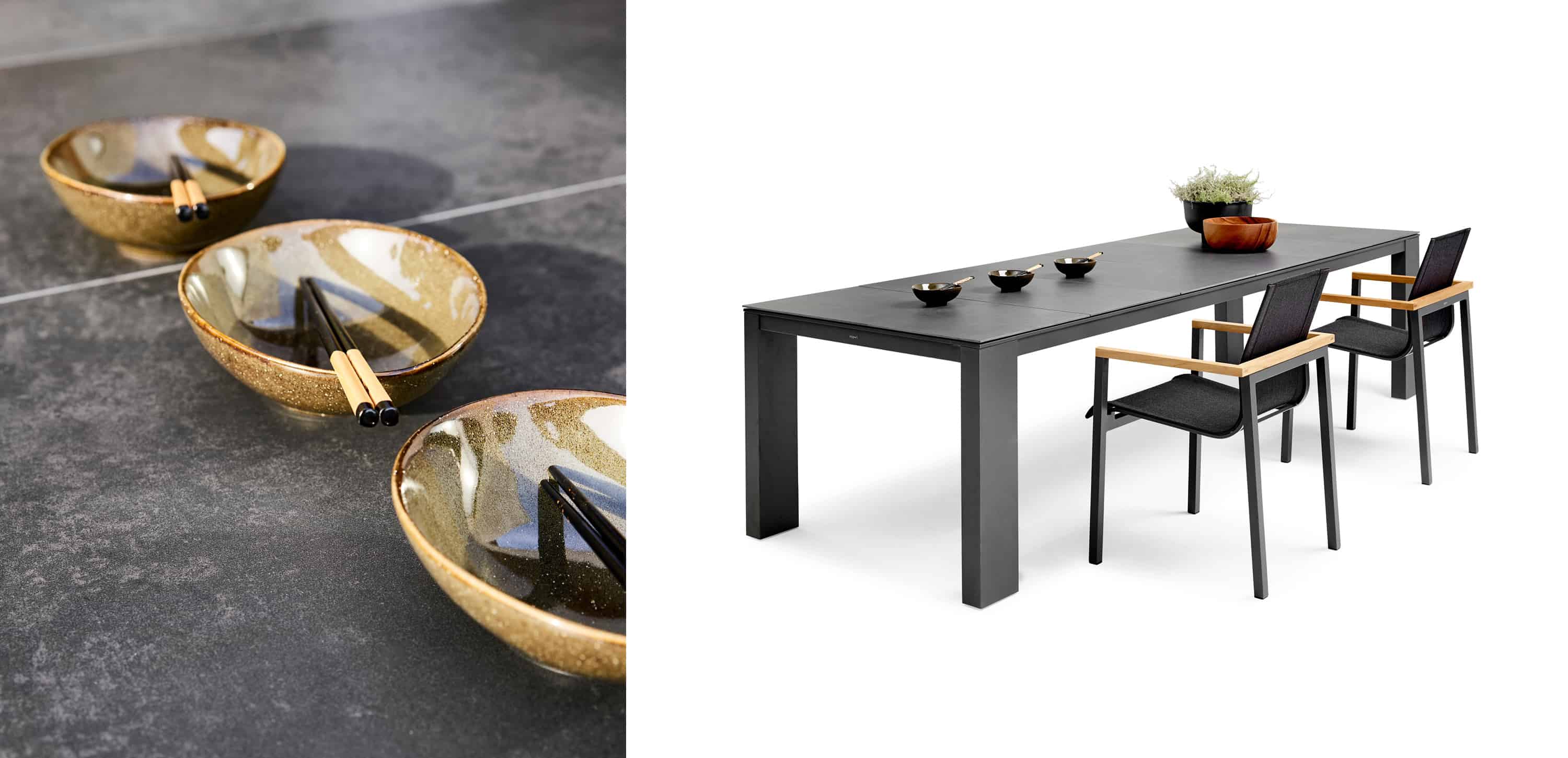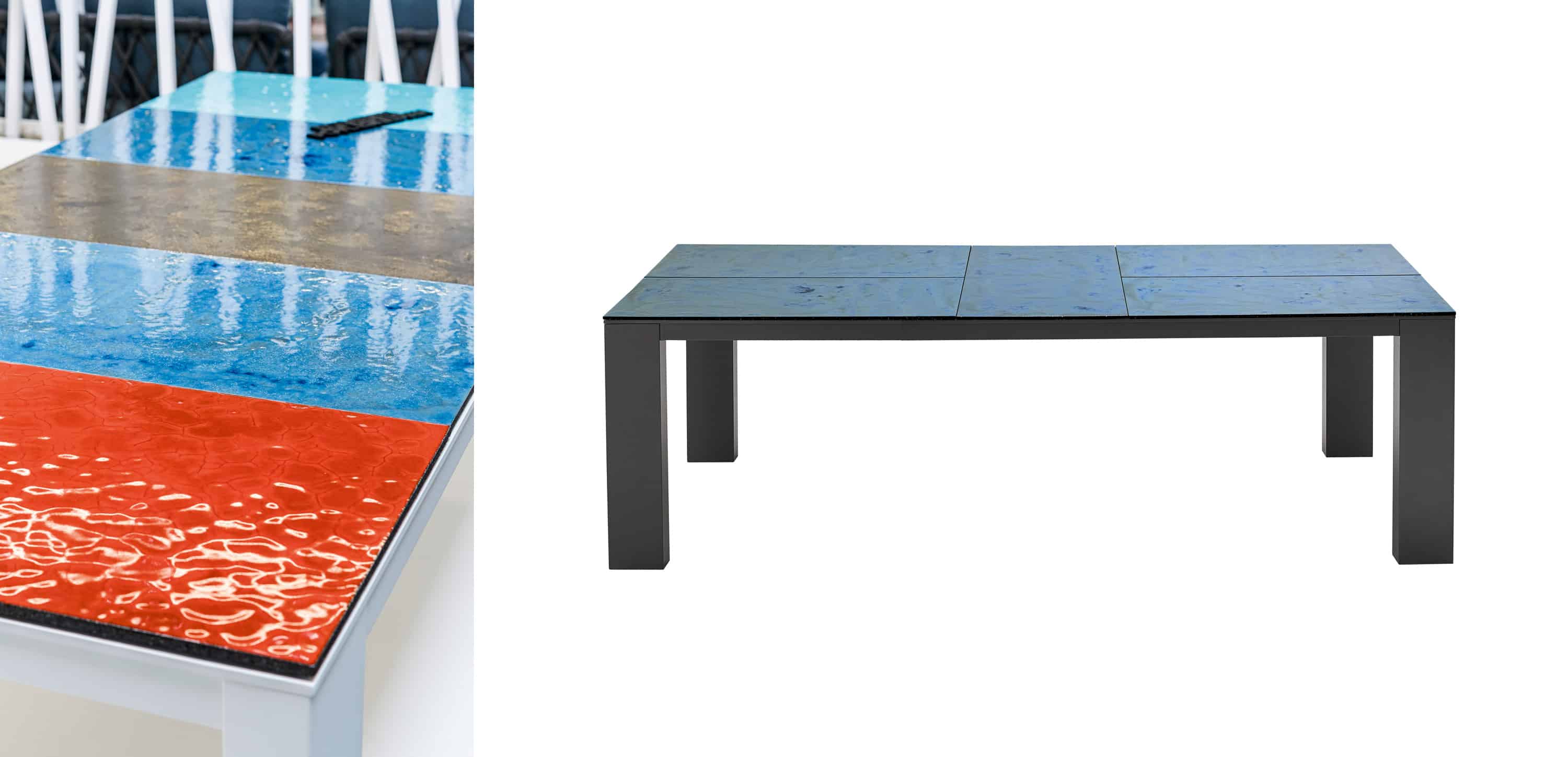 The ELEMENTS table series is designed in a timeless, linear design characterized by wide, solid table legs that guarantee physical stability and create visual solidity. Different variations are available for the table top: As a one-piece or divided into small sections with subtly matt surfaces or glossy colours.