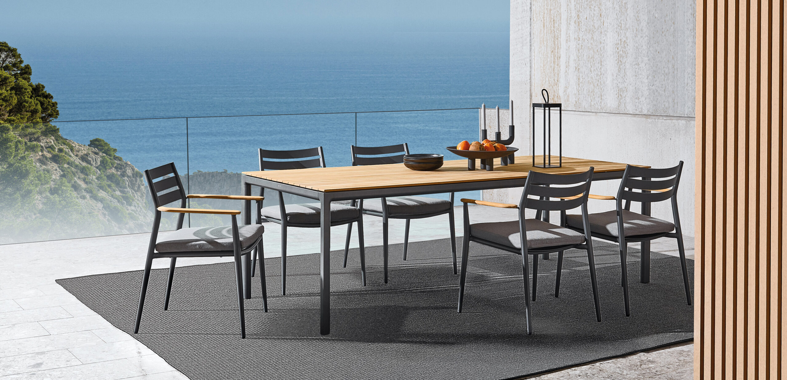 Wie aus einem Stück gegossen präsentiert sich der SOFT Tisch in schmalem, raffinertem Rahmenprofil mit kantigen Außenseiten, die nahtlos in weich gerundete Innenseiten und Tischbeinverbindungen übergehen. Die Tischgestelle aus Aluminium tragen wahlweise Keramik- oder HPL-Tischplatten und sind in unterschiedlichen Größen erhältlich.